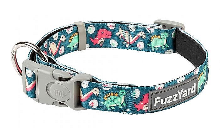 Αναδείξτε το στυλ του σκύλου σας με το ανθεκτικό περιλαίμιο Fuzzyard σε σχέδιο δεινόσαυρου, ιδανικό για άνετες και ασφαλείς βόλτες.
