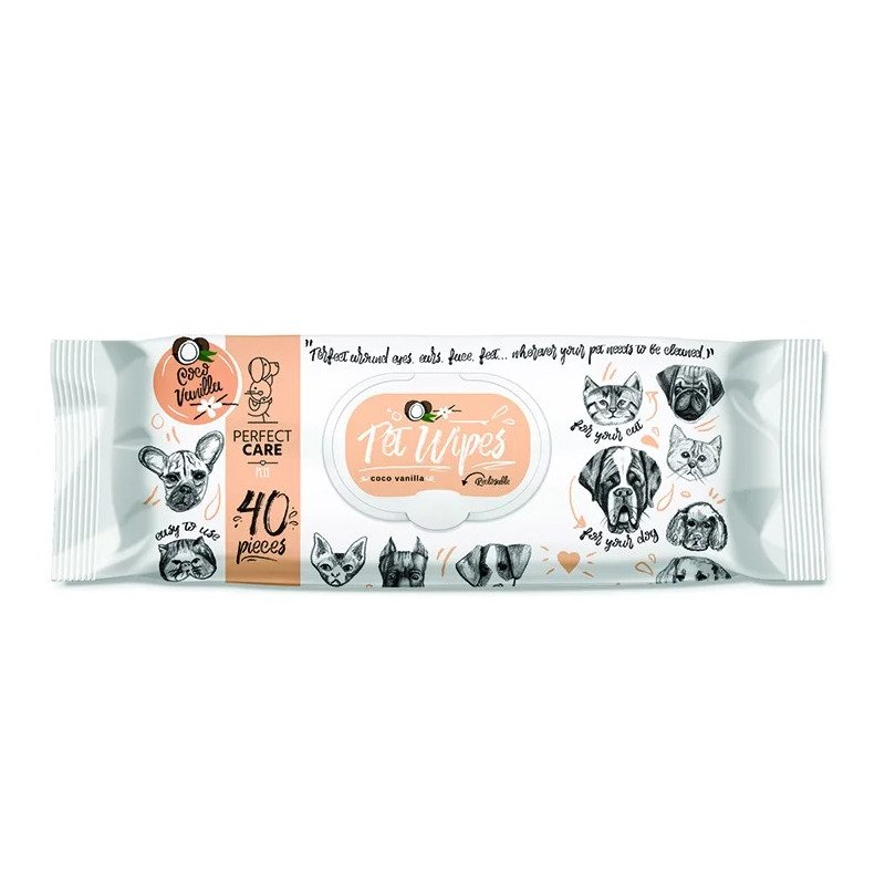 Απαλά μαντηλάκια καθαρισμού με άρωμα βανίλιας για σκύλους. Ιδανικά για γρήγορη φροντίδα τριχώματος, ποδιών και ευαίσθητων περιοχών.