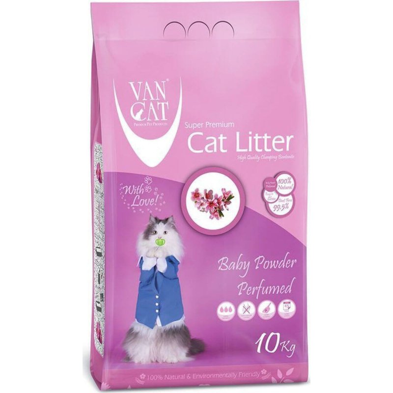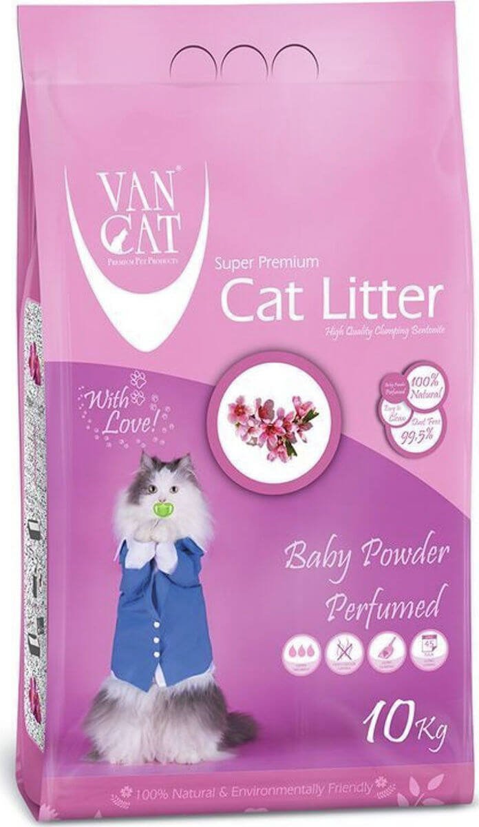 VANCAT BABY POWDER 10KG: Άμμος γάτας με άρωμα πούδρας, 100% φυσική, με εξαιρετική απορρόφηση και μακρά διαρκεία. Ιδανική για άνεση και καθαριότητα.